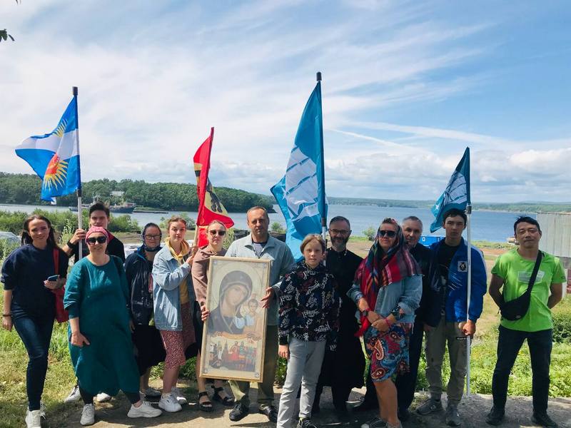 Автомобильный Крестный ход со святынями хабаровских храмов проследовал по маршруту: Хабаровск - Троицкое - Ванино – Заветы Ильича – Полуостров Меньшикова – Мыс Красный Партизан – Советская Гавань - Хабаровск.