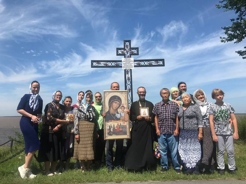 После очередного молебна в селе Троицкое верующие уже пешим Крестным ходом прошли к поклонному кресту, который был установлен в память о священнике Филиппе Распопове, который был настоятелем сельского прихода в начале ХХ века и убит бандой красных партизан из отряда Тряпицына в 1919 году.