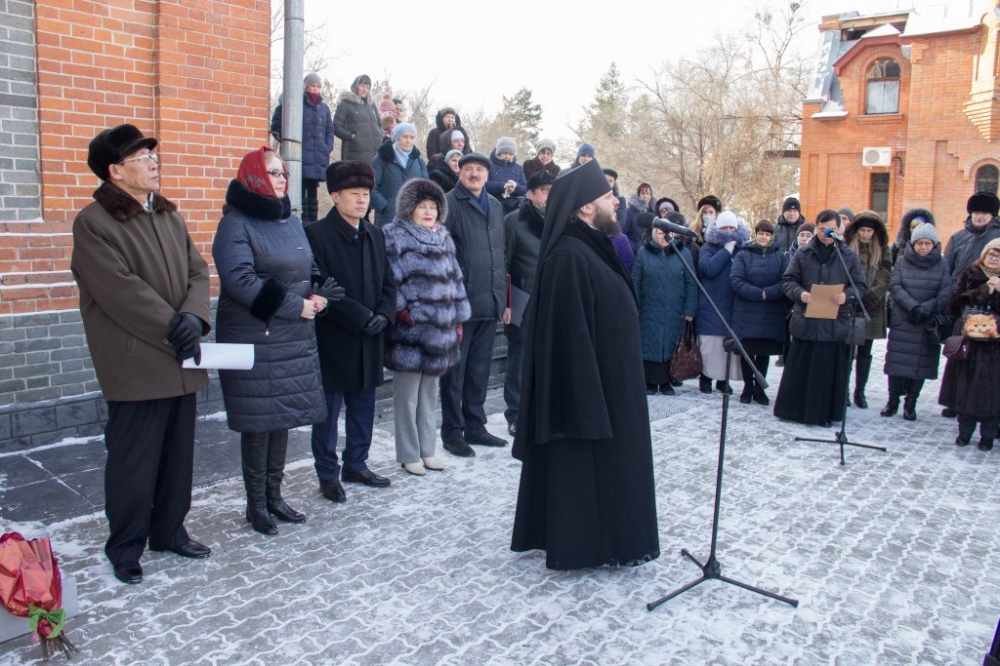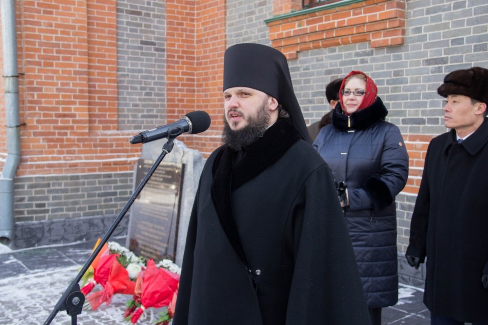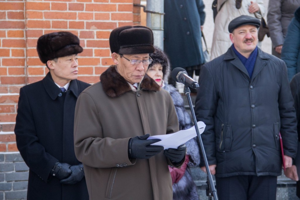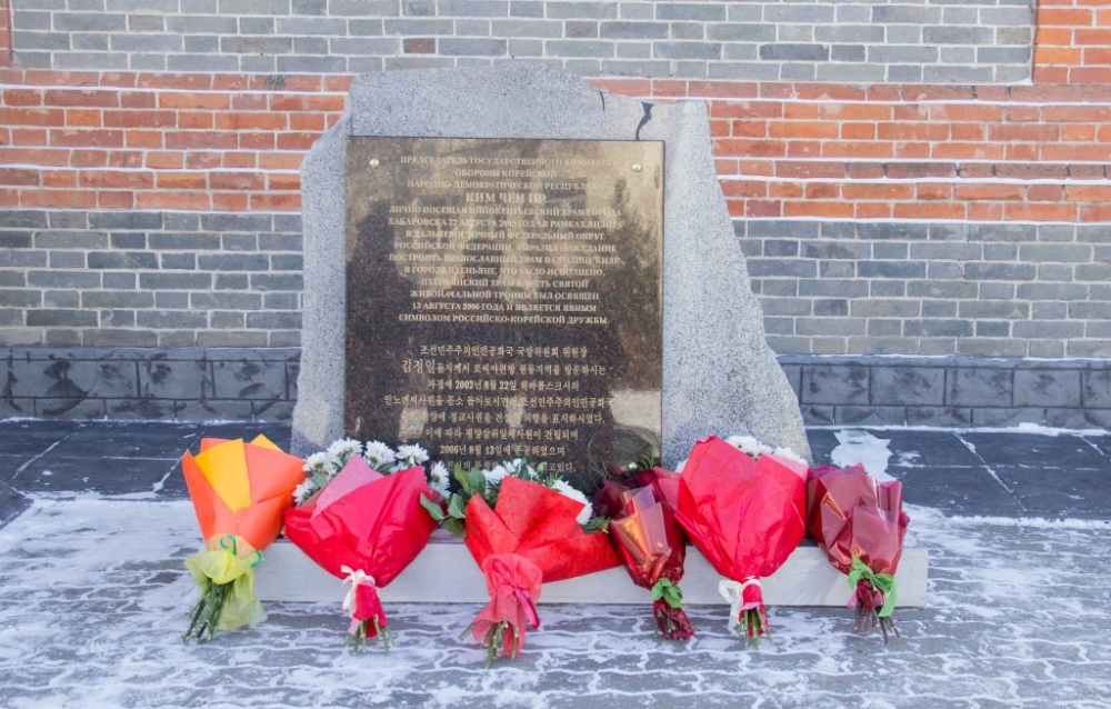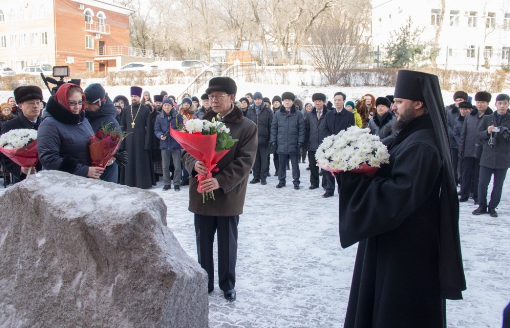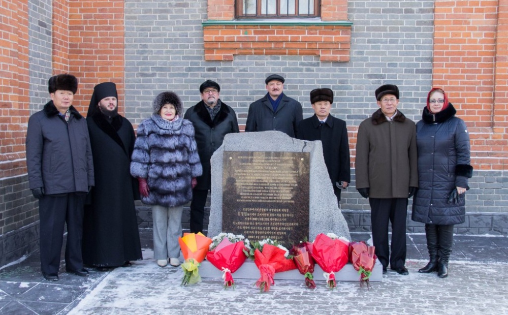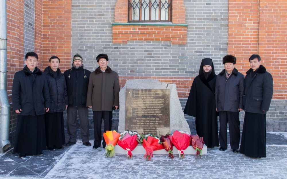 Торжественная церемония открытия мемориальной доски в честь 16-летия посещения храма святителя Иннокентия Иркутского Ким Чен Иром 30 декабря 2018 г.